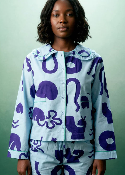 Organic Cotton Pyjama Set in Blue Things