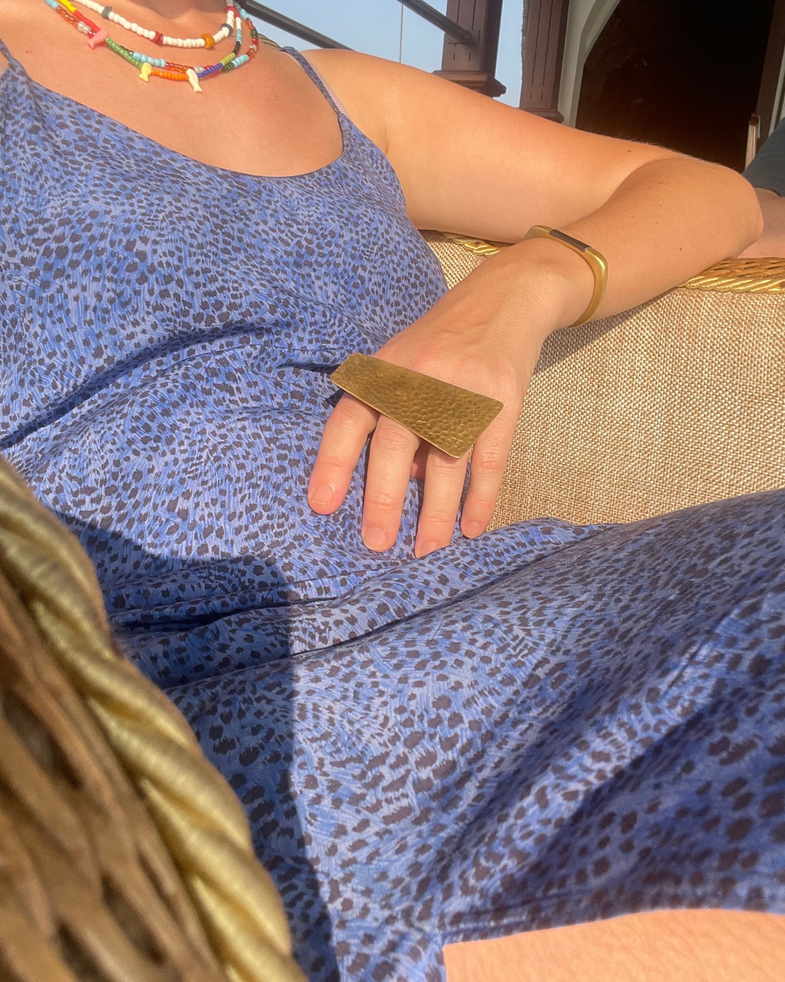 Handmade in the sun-drenched streets of Rajasthan by Vikas, a master craftsman who learned the delicate dance of metalwork at his grandfather's knee. Vikas and his team use locally sourced brass, embedding each piece with a story of heritage and hard work. The large abstract design is more than just a ring; it's a conversation starter, a little rebellion against the mundane.