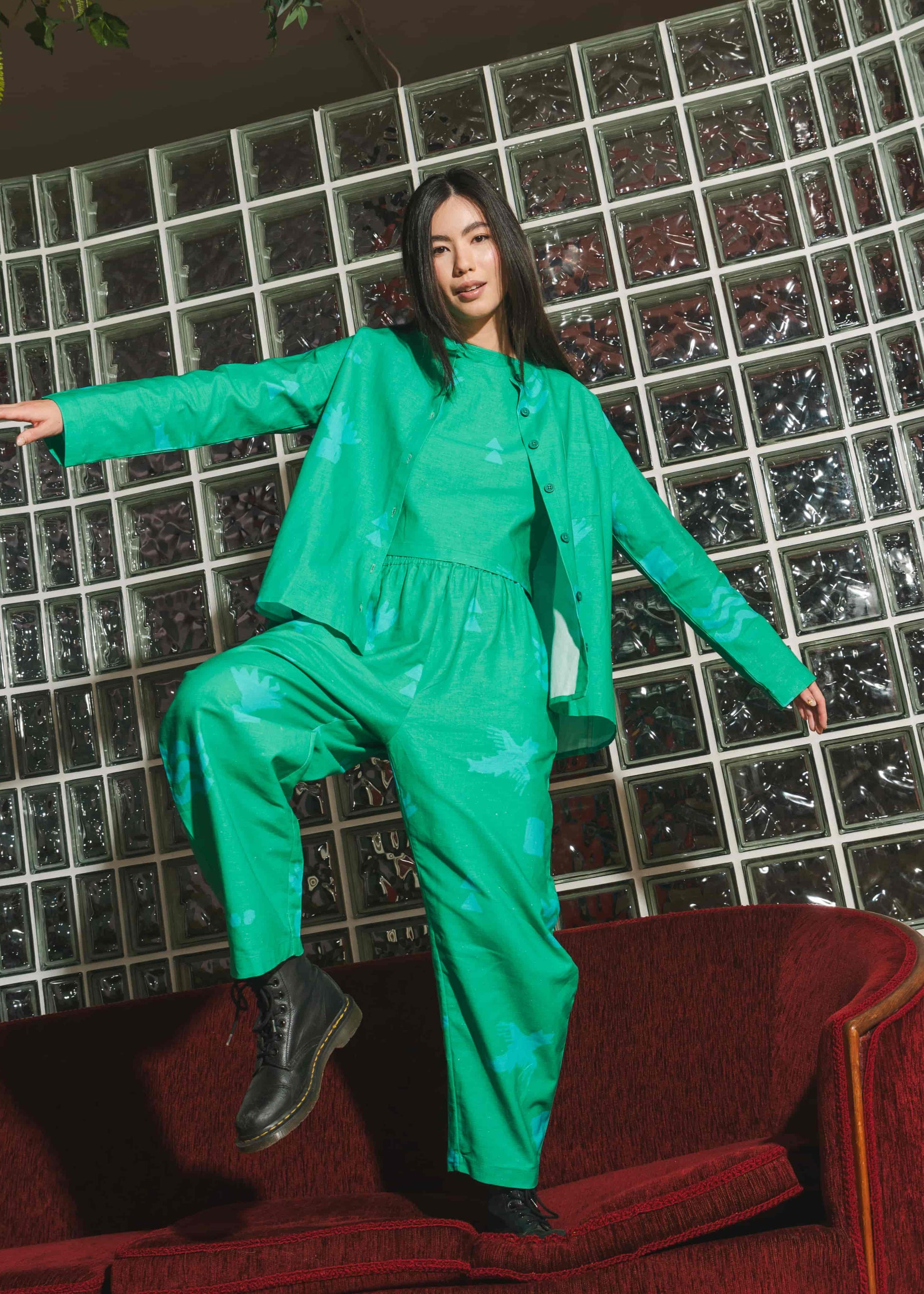For a laid-back look, slip into this Meadow Flow Organic Loose Fit Cotton & Linen Twill Weave Shirt. Its luscious mix of jade green and aqua blue ensures both comfort and style will accompany you all year round.