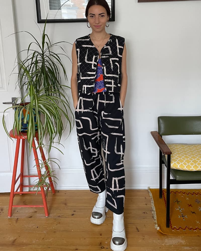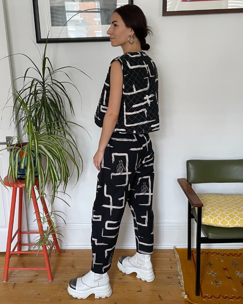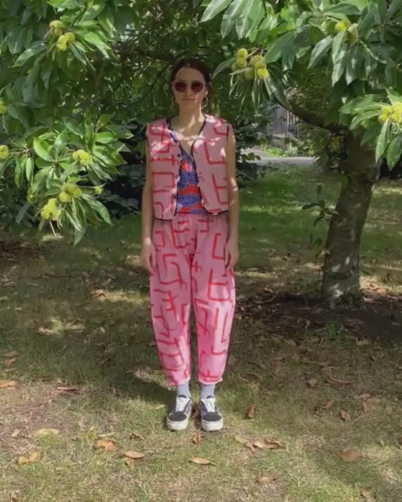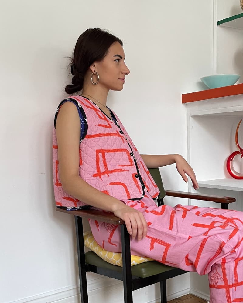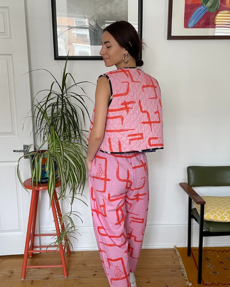 One of our best sellers. With pockets and reversible! Reversible with black and white on one side, and pink and red the other, it's like having two outfits in one. Made from our durable organic cotton and linen, the quilting is also made from organic cotton (plastic free baby!). Layering heaven, wear it over jackets, jumpers, t-shirts, dresses - there's no end to the combos!